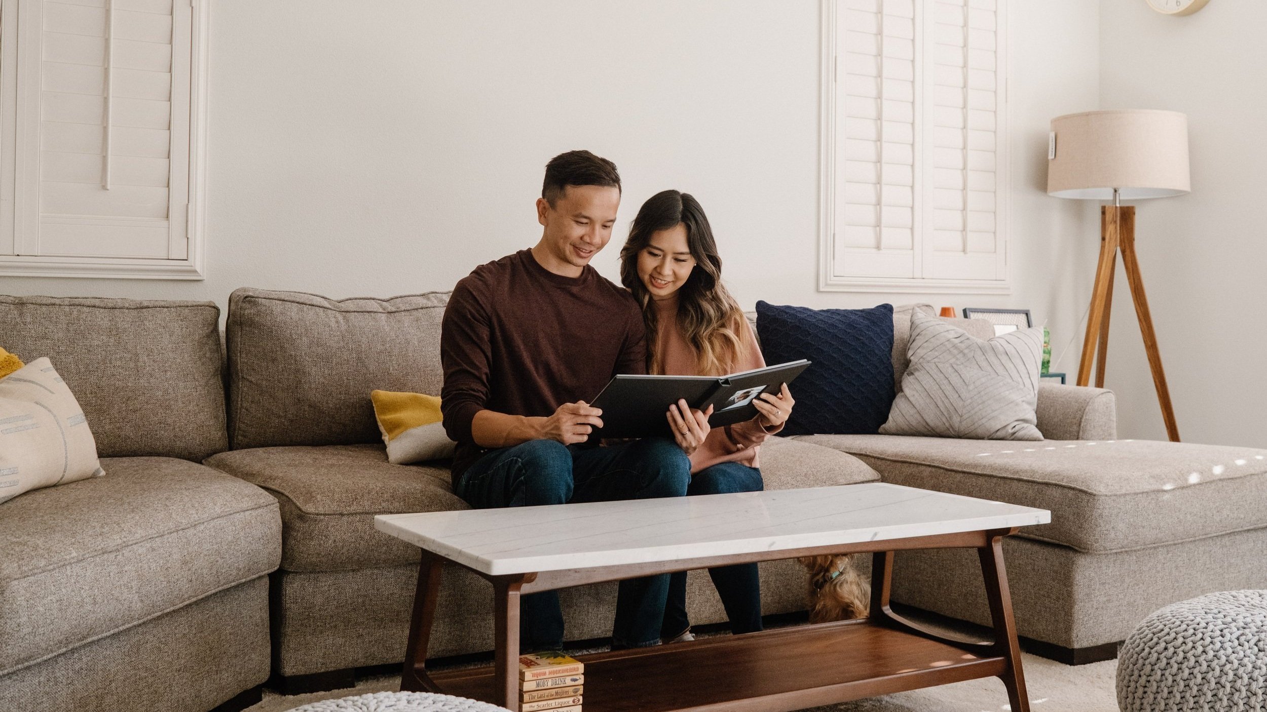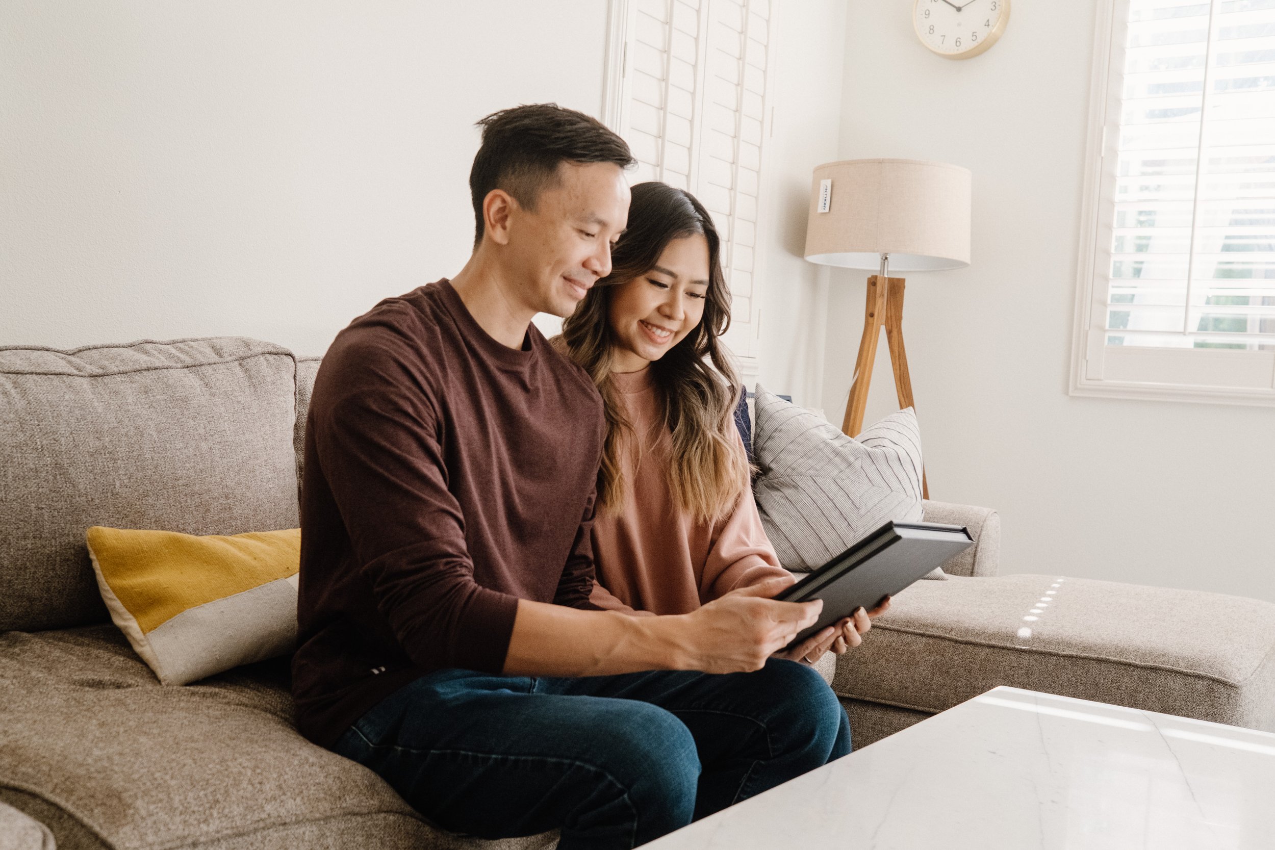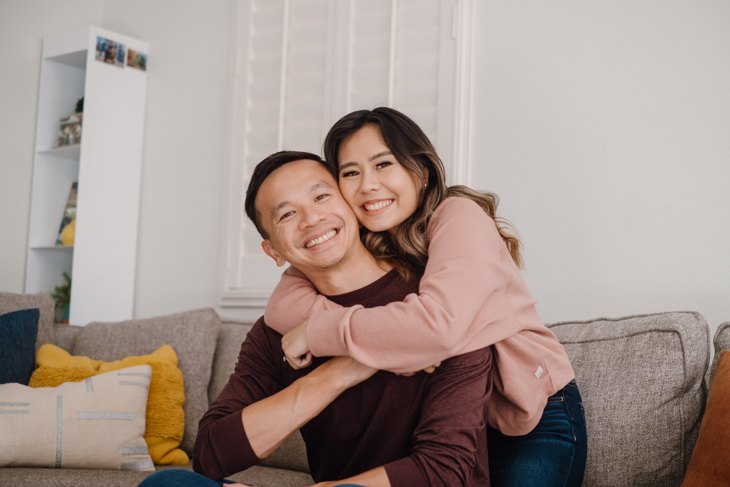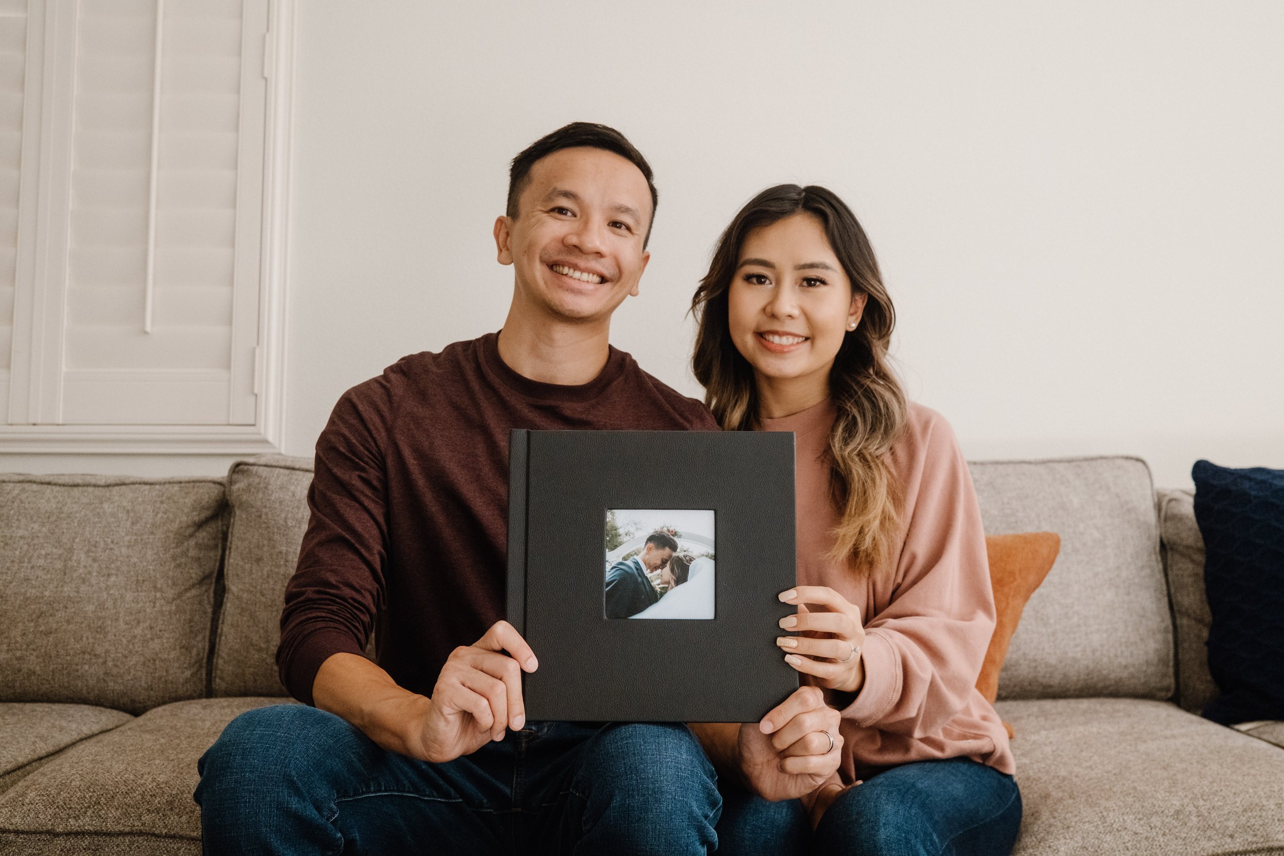 Thai and Thao were the first couple to purchase our wedding album, and because of this, I wanted to give it to them personally. I even offered a complimentary, in-home photo session since I was already going to be there, which you can see below. Seeing the album in their home was surreal. Thai & Thao loved decorating their home with memories, and to be able to see it shelved next to some of the photos that mean so much to them, means the world.